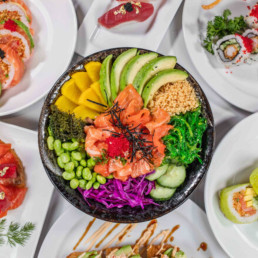 Thon, saumon, tilapia, albacore, crevette frit,avocat, caviar